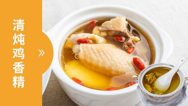 燉雞湯風(fēng)味香精,香味鮮甜芳香、肉質(zhì)感、湯感、油脂感飽滿濃郁。甜、鮮、香融為一體。